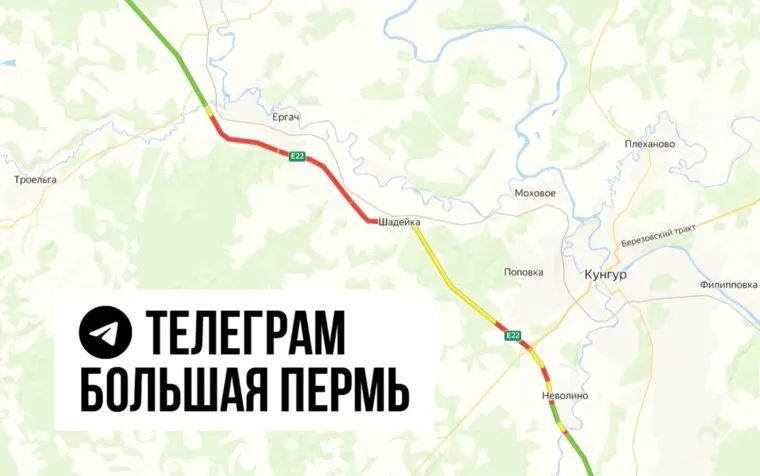 По данным сервиса «Яндекса Карты», машины встают у отворота на Ергач. Затор растянулся до Кунгура.
