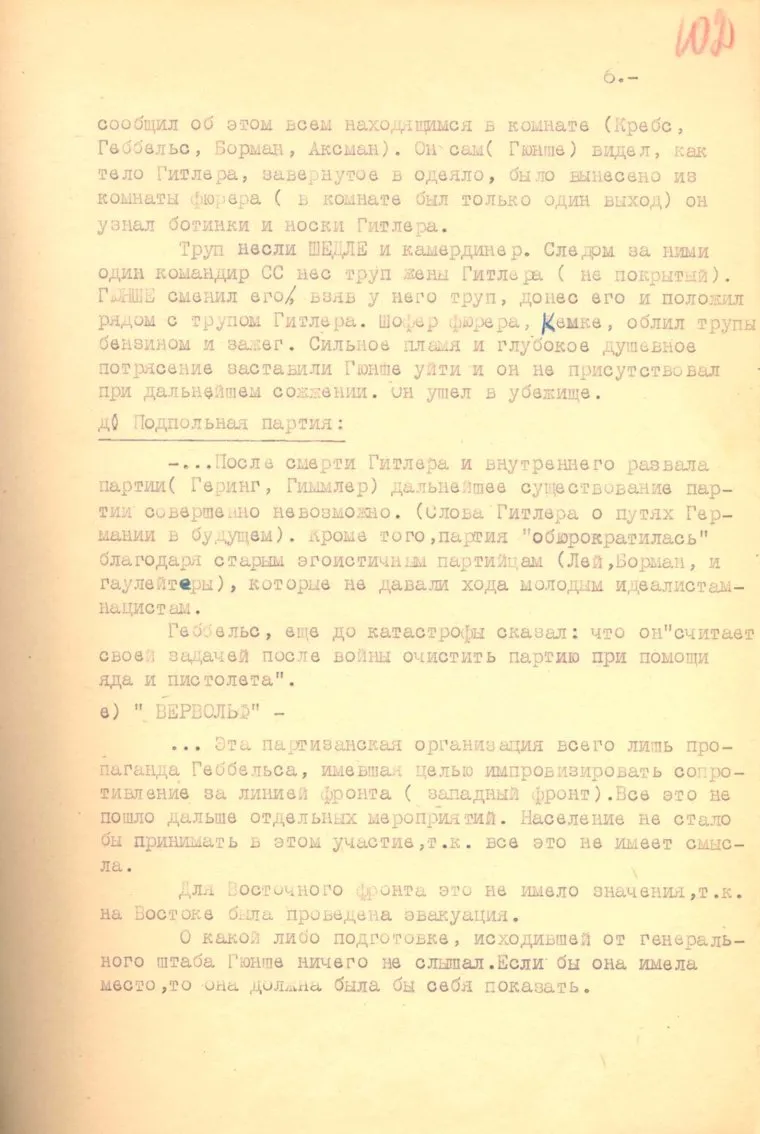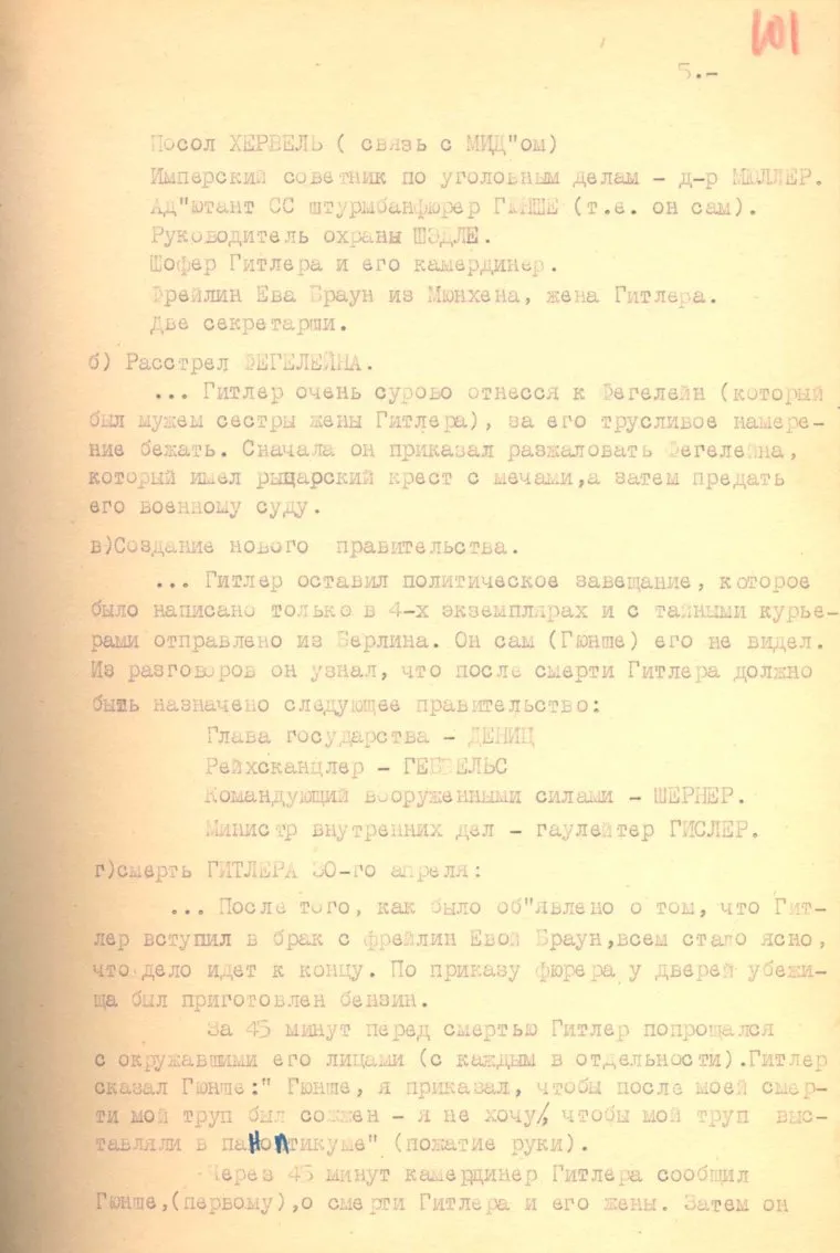Спустя 45 минут Линге сообщил Гюнше о смерти Гитлера