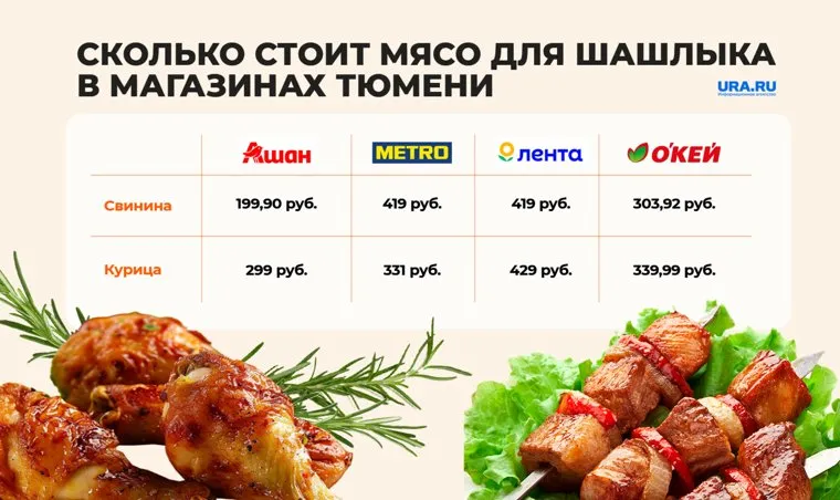 В Тюмени стартовал сезон шашлыков, гипермаркеты вовсю продают курицу и свинину в маринаде. URA.RU сделало подборку магазинов, где и за сколько можно выгоднее всего купить полуфабрикаты к главному блюду майских праздников.