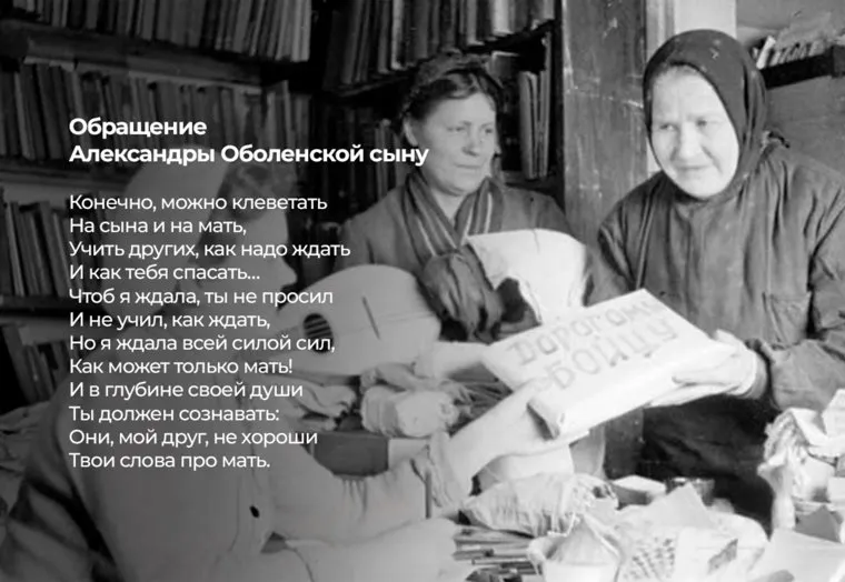 Однако ценители поэзии считают, что Оболенская зря обиделась на сына за эти строки. «Слова про мать», задевшую маму Симонова — лишь поэтический прием, который усиливает образ женщины, ждущей возлюбленного с фронта.