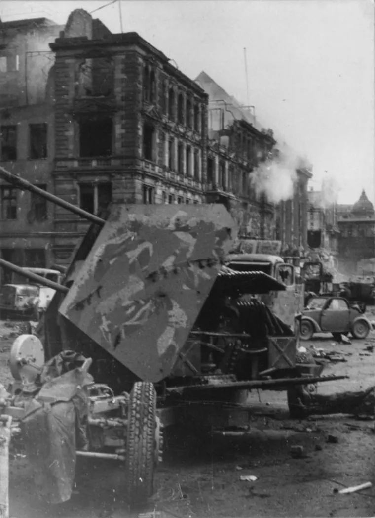 Журналисты газеты «Красная звезда» в репортаже «Последние часы фашистского логова» отражали мрачные картины поверженного Берлина. Как писал спецкор с места событий, на каждом шагу были развороченные баррикады, подбитые «фердинанды» (немецкая тяжелая самоходно-артиллерийская установка — прим. URA.RU), груды кирпича... Местные жители, прятавшиеся в бомбоубежищах, осторожно выглядывали на улицы. Одна из местных жительниц в рваном платье, увидев советских солдат, заплакала и сказала: «Спасибо, что пришли...».