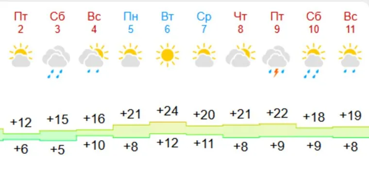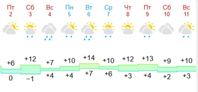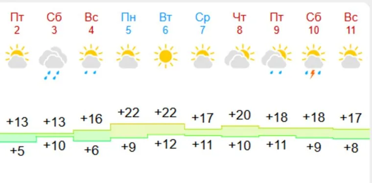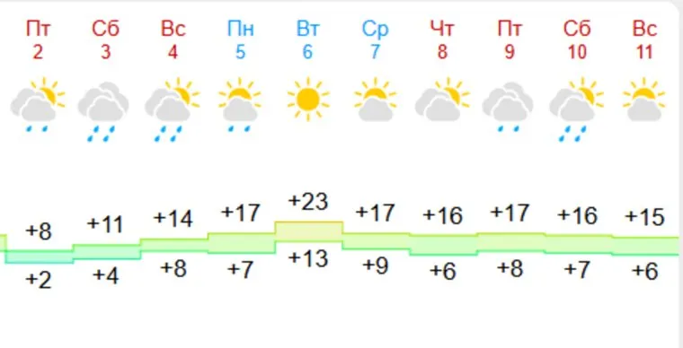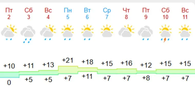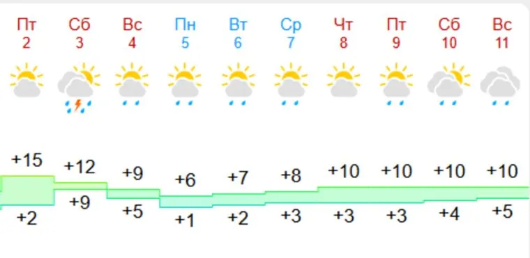 Прогноз погоды в Санкт-Петербурге со 2 по 11 мая