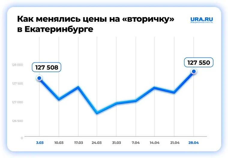 Стоимость квадратного метра на вторичном рынке жилья в Екатеринбурге к концу апреля составила 127550 рублей — это новый рекорд в данном сегменте. Актуальную статистику опубликовала Уральская палата недвижимости.