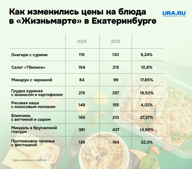 «Придется готовить дома»: екатеринбуржцы пожаловались на резкий скачок цен в «Жизньмарте». Инфографика