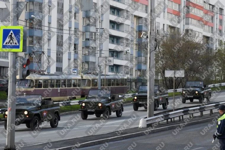Военные полностью перекрыли центральные улицы Екатеринбурга для проведения генеральной репетиции парада. Движение для транспорта закрыли с 4 часов утра, запустят около 12 часов дня.