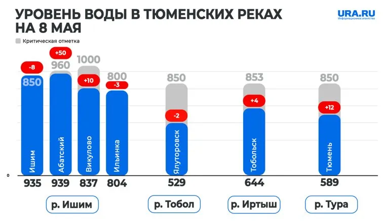 Уровень воды в тюменской реке прибавил 50 сантиметров за сутки. Инфографика