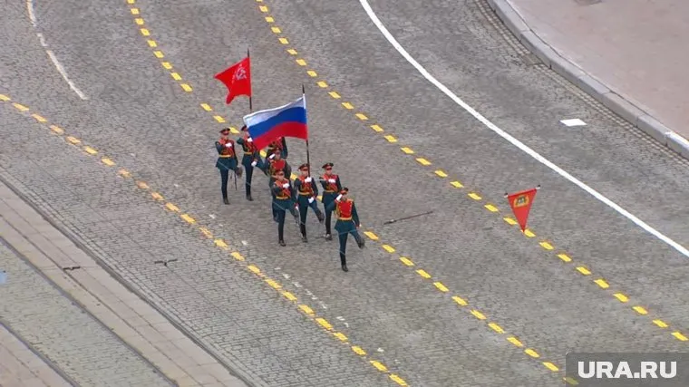 10:02 09.05.2025 Парад стартовал. По площади 1905 года пошли военные со знаменем Победы и российским флагом.