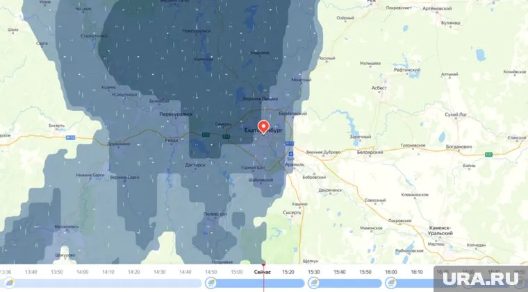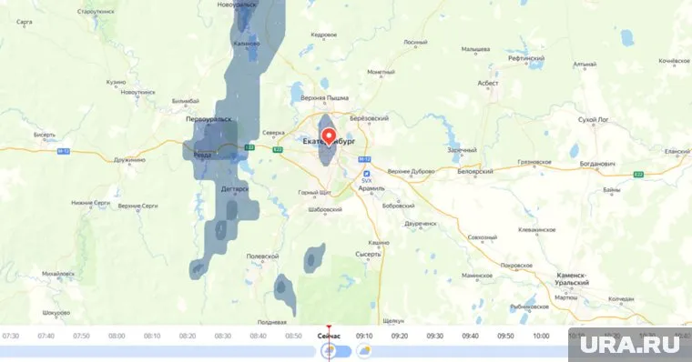 09:01 09.05.2025 В центре Екатеринбурга начался небольшой дождь. Согласно прогнозу «Яндекс. Погоды», осадки вскоре закончатся.