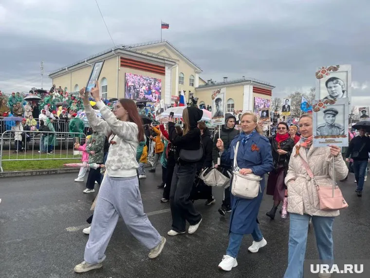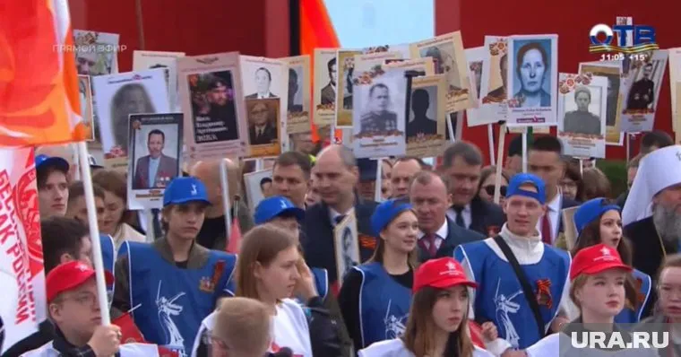 11:06 Начался «Бессмертный полк». Его возглавили Жога и Паслер. Полпред вышел с портретом сына Владимира, погибшего весной 2022-го, выполняя боевую задачу в зоне СВО. У Паслера в руках портрет прадеда Михаила Рагозина, который прошел почти всю войну. Он ушел на фронт в 1942 году, будучи отцом десятерых детей. Ему было уже почти 50 лет. Воевал на Белорусском фронте в артиллерийском полку — наводчиком.