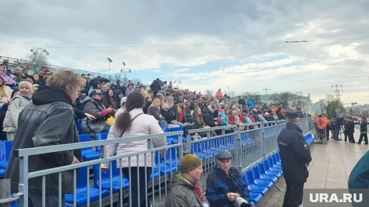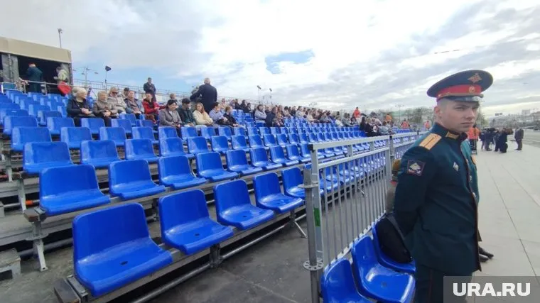 08:50 09.05.2025 Такая обстановка сейчас на площади 1905 года. Некоторые горожане уже ждут начала парада на трибунах.