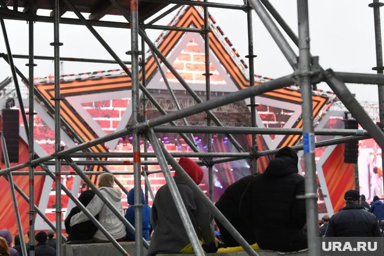 21:28 09.05.2025 Рабочие подготавливают сцену к выходу «Рондо».