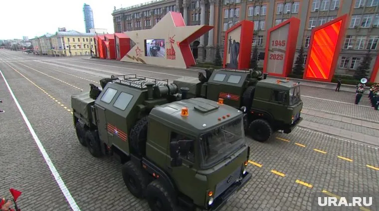 10:45 09.05.2025 Также в состав колонны вошли военные комплексы «Линза» для поиска раненых на поле боя, АТЗ-8 на базе «Урала» и ремонтные машины. Всего по площади проехали 94 единицы техники.
