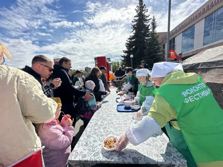 10:48 Тем временем у Технопарка уже угощают легендарной фронтовой кашей.