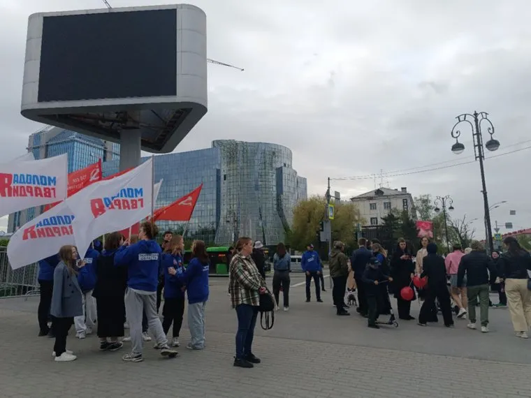 10:54 Тюменцы наблюдают за праздничным шествием в центре Тюмени.