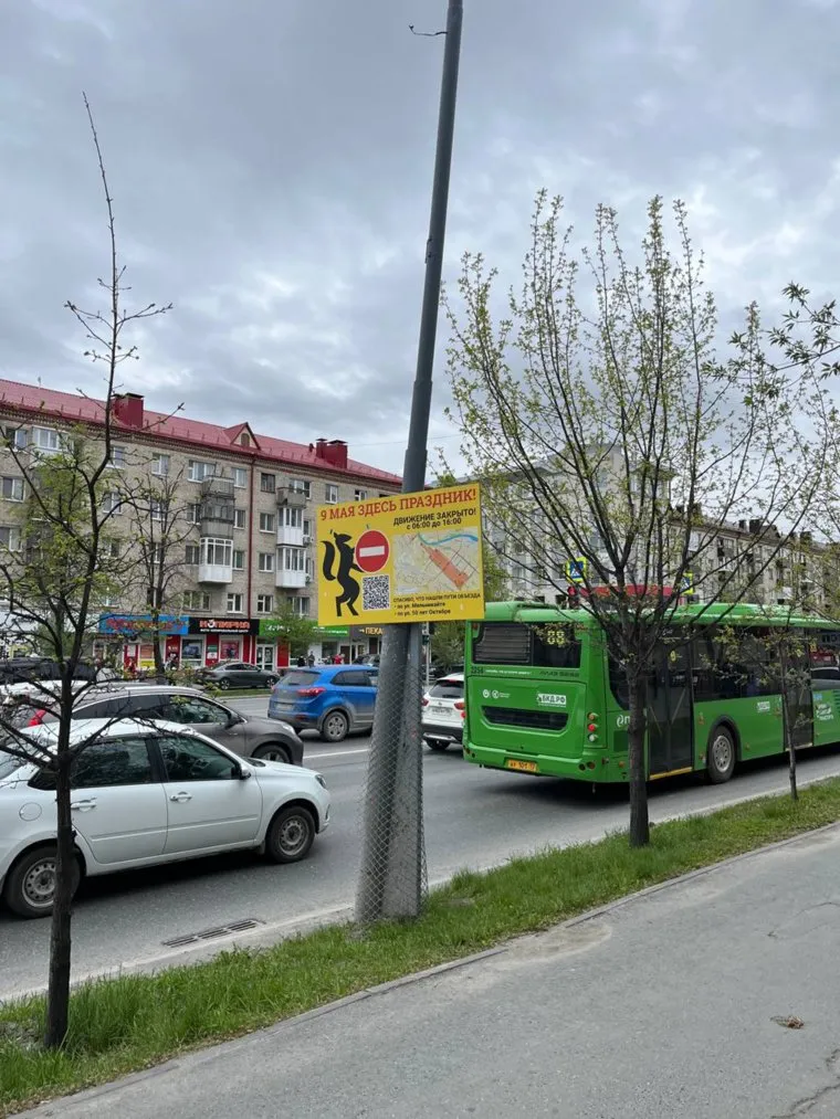 11:56 На улицах Тюмени разместили специальные стенды. На них — информация о перекрытии улиц для празднования 80-летия со дня Великой Победы.