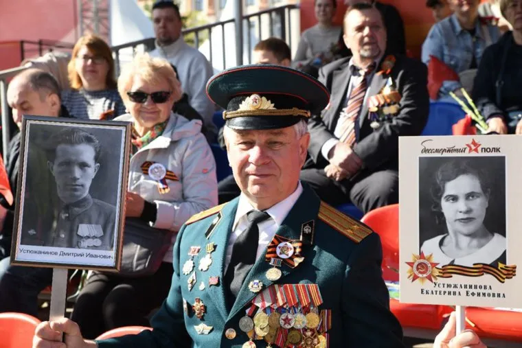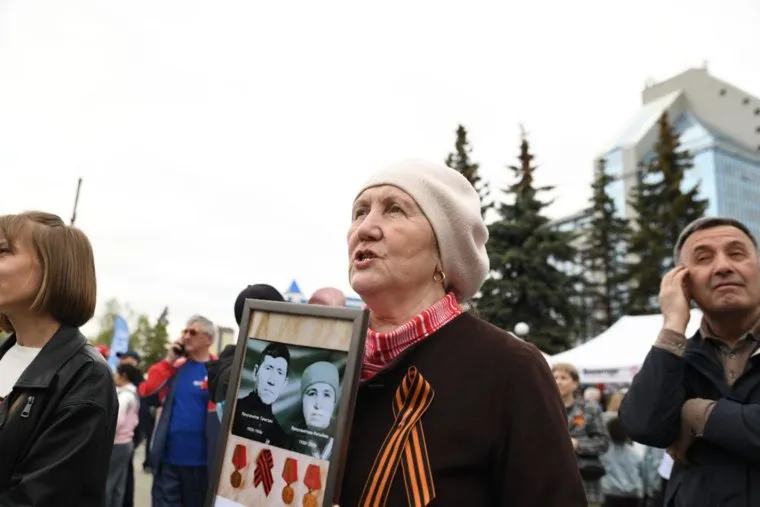 09:49 Одно из главных праздничных мероприятий — шествие «Бессмертного полка». На Парад Победы тюменцы приходят с портретами своих воевавших предков.