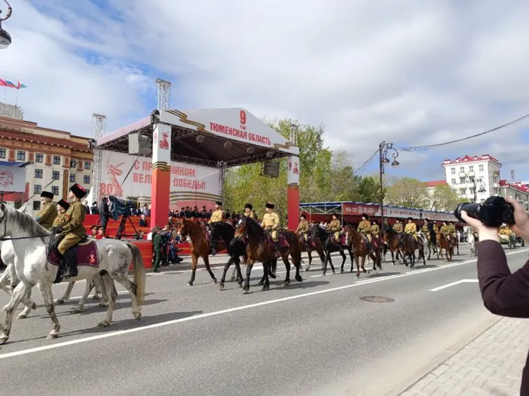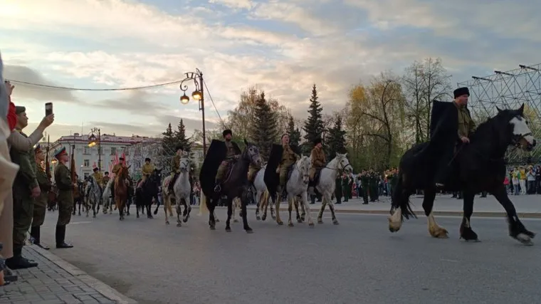 10:40 Конница вышла на улицы. Во главе конного эскадрона идет Артем Шилохвостов — победитель европейских и российских чемпионатов по выездке, наследник конной династии. Его отец — Николай Шилохвостов был основоположником конноспортивного движения Тюмени.