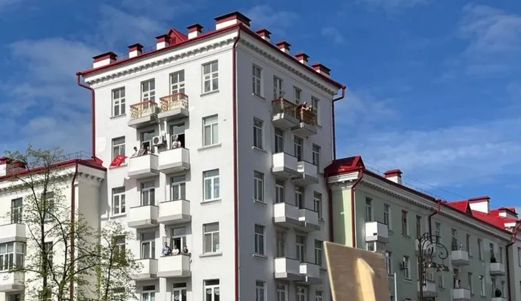 10:30 Тюменцы наблюдают за Парадом не только с площади, но и с балконов домов.