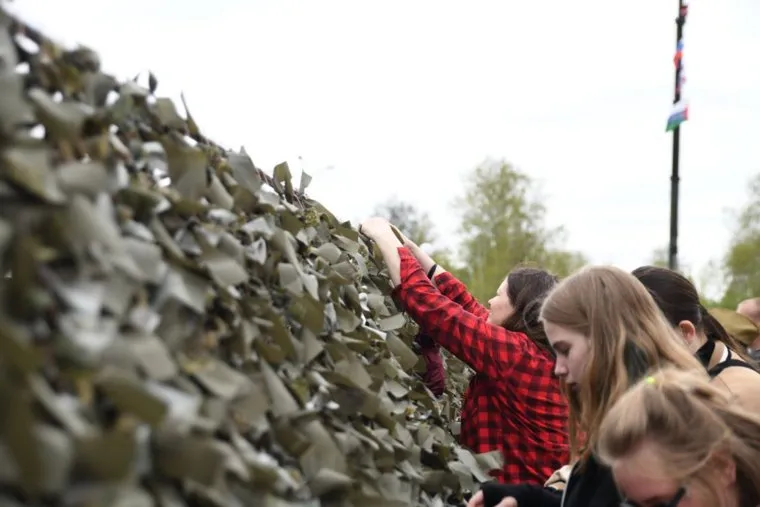 13:02 На площади Памяти для тюменцев проводят мастер-класс по плетению маскировочных сетей.