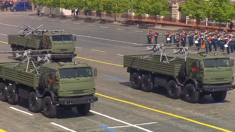 13:06 Впервые проходит колонна войск БПЛА. Представлены различные типы аппаратов среди них «Орлан -10 » и «Орлан-30».