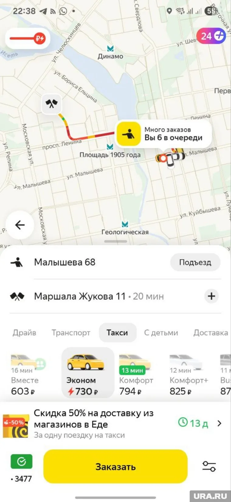 Цены на такси в Екатеринбурге улетают в космос. Скрин