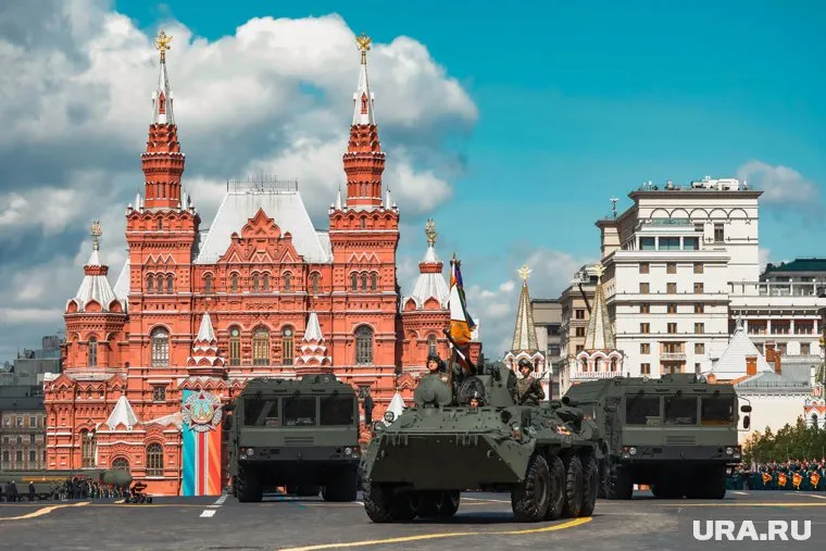 Празднование победы в Великой Отечественной войне является значимым событием для всей России. Как непосредственно 9 мая, так и в предшествующие этому дню даты, жители страны вместе с семьями собираются в центре Москвы, чтобы наблюдать прохождение военной техники, включая танки, автомобили КАМАЗ с боевыми беспилотниками, баллистическими ракетами и другими образцами вооружения российских ВС».