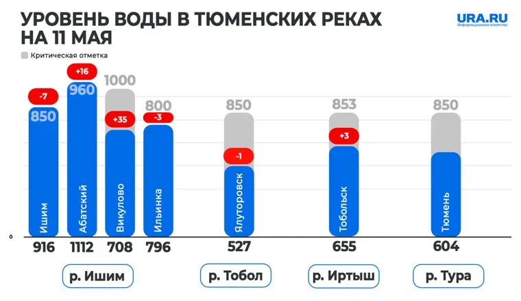 На остальных участках рек в Тюменской области обстановка стабилизируется. Данные по уровню воды следующие: