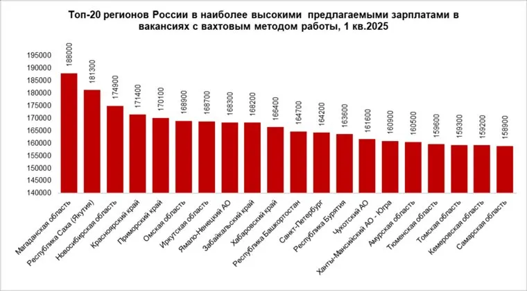 Ханты-Мансийский автономный округ оказался в числе двадцати российских регионов, где отмечаются наиболее высокие заработные платы для сотрудников, работающих вахтовым методом. Тем не менее, уровень интереса к подобному виду занятости среди жителей региона остается низким. Об этом URA.RU сообщили аналитики рекрутинговой платформы hh.ru по итогам анализа рынка труда за первый квартал 2025 года.