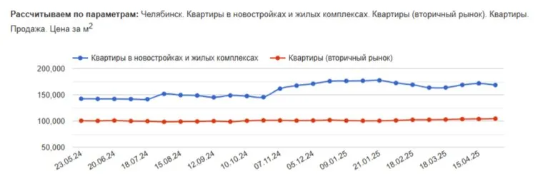 «В Челябинске в мае 2025 года стоимость квартир на вторичном рынке выросла до 104 600 рублей за квадратный метр. Минимальная стоимость квартир составила 2,5 миллиона рублей, максимальная — 17,5 миллиона рублей за объект», — сообщается на сайте Restate.