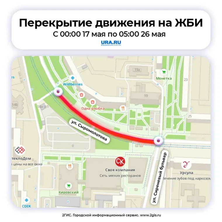 Ранее URA.RU рассказывало, что движение транспорта перекроют в поселке Совхозный. С 27 по 30 мая на участке в районе дома № 25 на улице Полковой будут прокладывать газопровод.