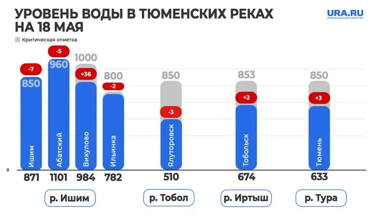- Тура в Тюмени +3 (633) критическая отметка — 850.