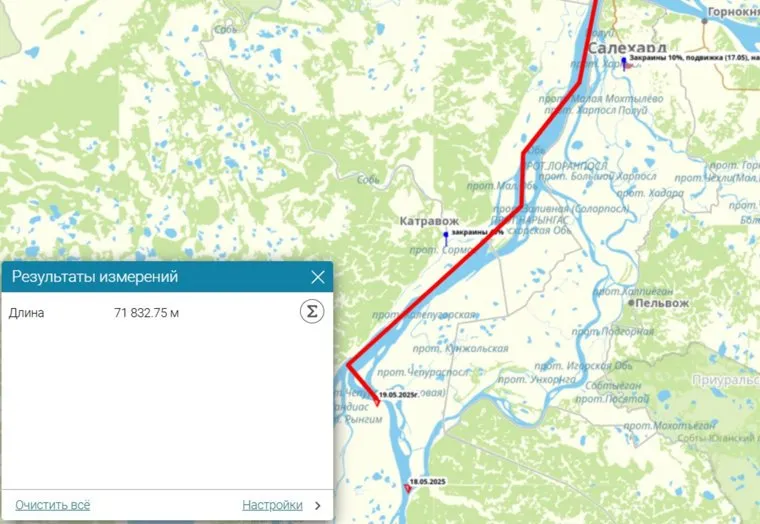 В ЯНАО ледоход на Оби за сутки прошел менее 20 километров. Карта