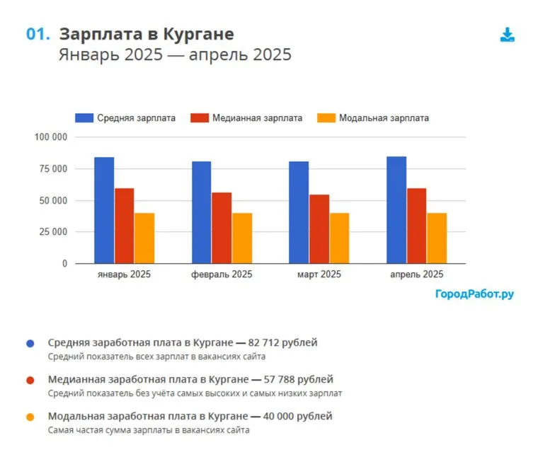 «Средняя зарплата в Кургане составила 85 025 рублей, но при этом медианная — 57 788 рублей, а чаще всего в вакансиях указывается сумма в 40 000 рублей», — говорится в исследовании сайта ГородРабот.ру.