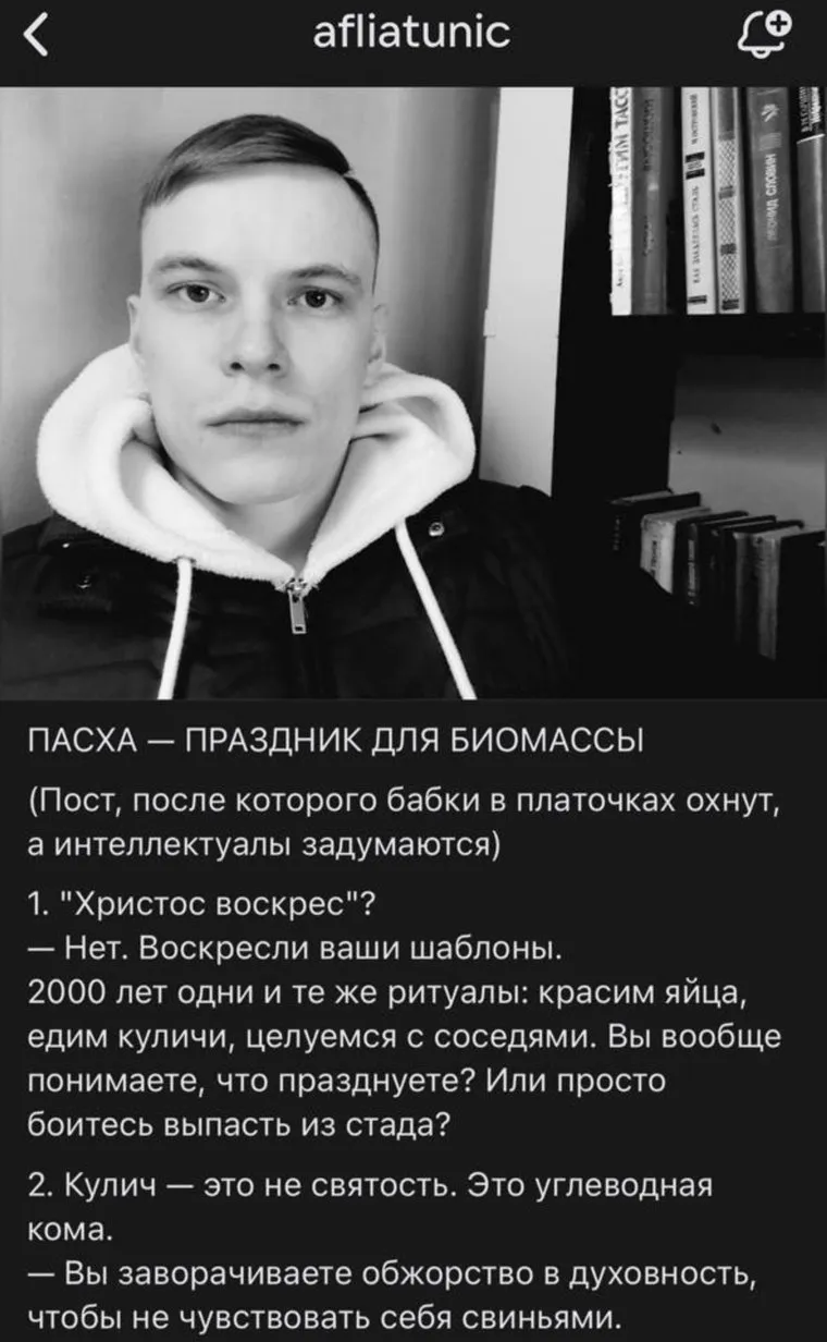 Публикация Альберта Афлятунова, в которой он критикует Пасху
