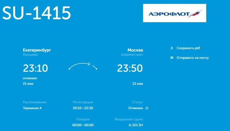 В Екатеринбурге отменили рейс до Москвы на фоне атаки беспилотников. Скрин