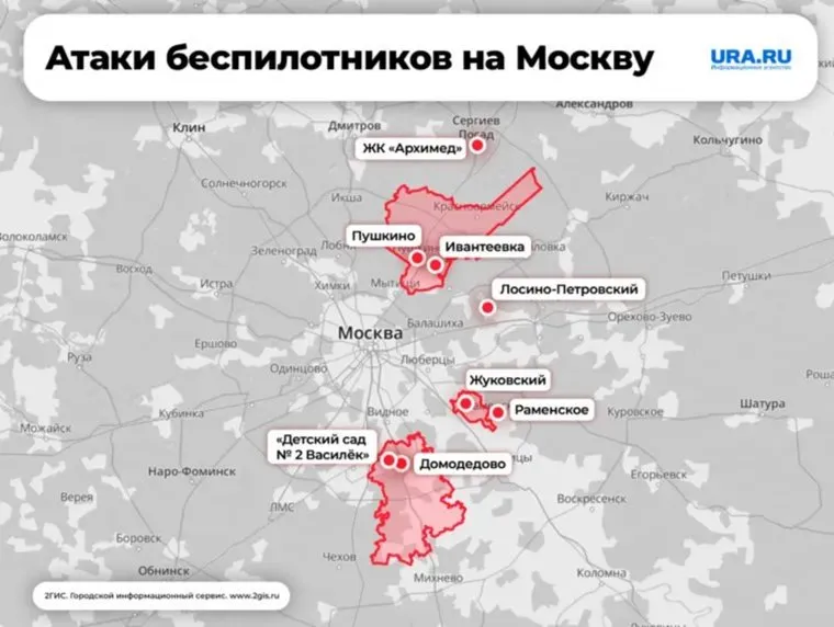 Карта атак беспилотников ВСУ на Москву за 21 мая 2025 года