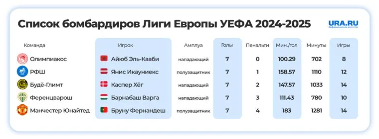 Топ-5 лучших бомбардиров Лиги Европы сезона 2024-2025