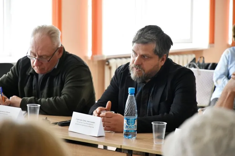 Денис Стритович обсуждает с историками КГУ проект стелы