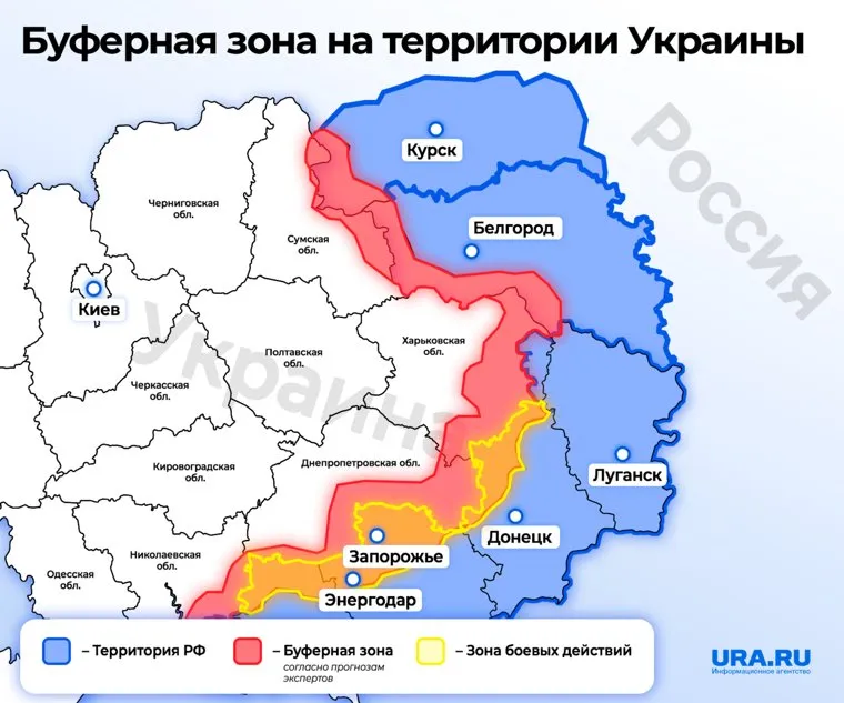 «Буферная зона — это Харьковская и Сумская области»: эксперты описали URA.RU, как она может выглядеть. Карта