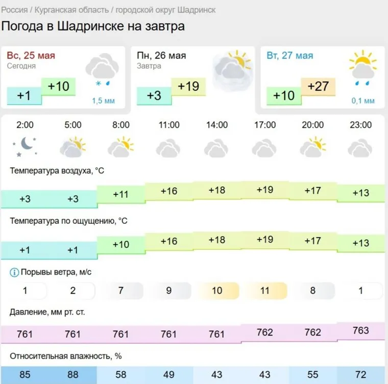 В Шадринске завтра, 26 мая, после заморозков и снегопада потеплеет до 19 градусов. Из-за перепадов температур и влажности город накроет туманом. Об этом говорится в прогнозе Gismeteo.