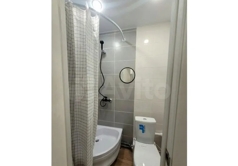 Уточняется, что в стоимость входит вся мебель. В ванной установлена душевая кабина. Квартира находится на пятом этаже пятиэтажного общежития.