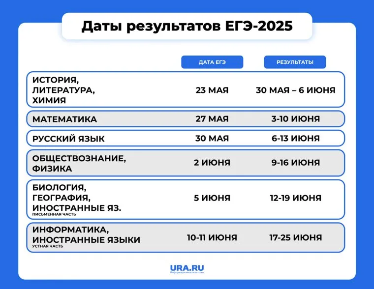 С 5 июня 2025 года на портале Госуслуг доступны результаты ЕГЭ по истории, литературе и химии. С 9-го числа стали известны результаты по математике. Когда и где смотреть результаты ОГЭ и ЕГЭ — в материале URA.RU.