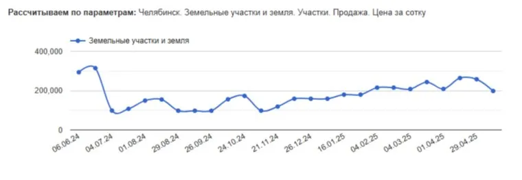 «В Челябинске за месяц стоимость земельных участков снизилась почти вдвое. Сейчас земли продаются по 340 — 6 800 000 за объект», — следует из динамики цен на сайте Restate.