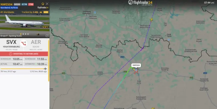 Самолет авиакомпании Nordwind Airlines, летевший из Екатеринбурга в Сочи днем 27 мая, подал сигнал бедствия над Казахстаном. Судя по данным сервиса Flightradar24, борт отправился на посадку.