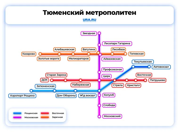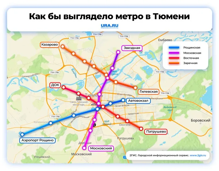 Жители Тюмени неоднократно просили власти построить в городе метро. Однако сделать это невозможно из-за качества почвы. И кроме того, на создание метро может уйти около 20 лет. С помощью ИИ URA.RU представило, как бы выглядело метро в городе и какие ветки в областной столице могли бы появиться.
