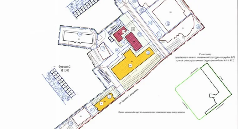 На карте красным обозначены проектируемые объекты строительства, желтым - реконструируемые