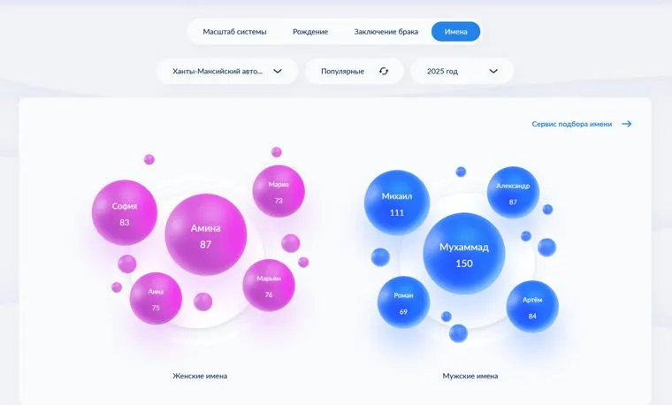 За почти 5 месяцев 2025 года Мухаммад и Амина стали самыми популярными именами у новорожденных в ХМАО. Статистика размещена на портале ЗАГС.