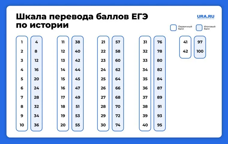 Первичные баллы представляют собой предварительные итоги экзаменационных работ. Максимальное количество первичных баллов различается в зависимости от предмета. Вторичные баллы, которые также называют тестовыми, являются окончательным результатом ЕГЭ и используются при поступлении в высшие учебные заведения. По каждому предмету максимально можно набрать 100 тестовых баллов.