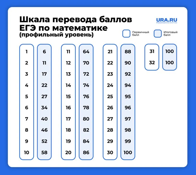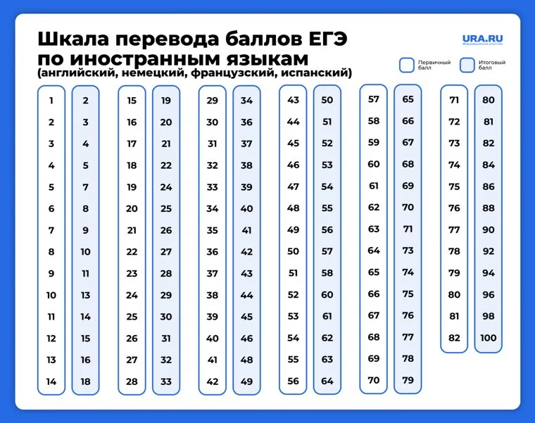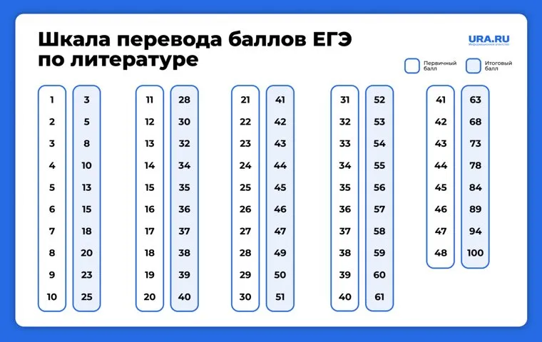 Как по разным предметам ЕГЭ баллы переводятся из первичных во вторичные. Инфографика