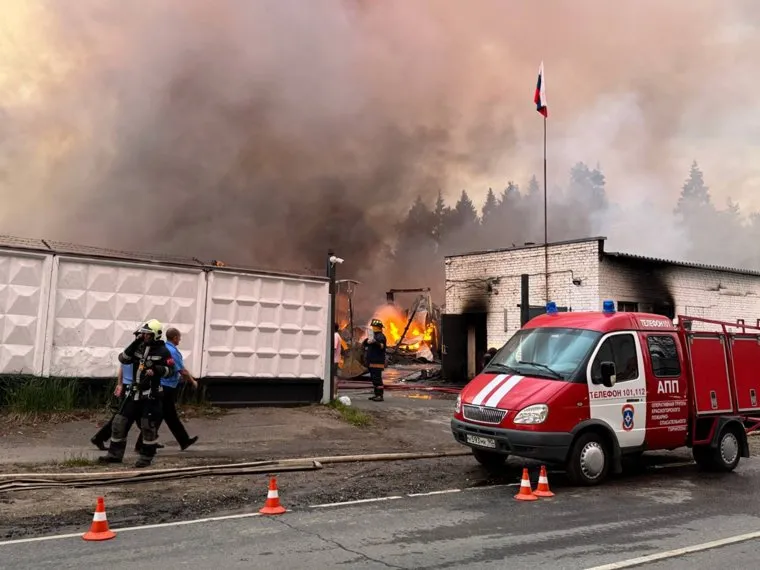 В Подмосковье произошел масштабный пожар. В районе Красногорска на Новорижском шоссе виден густой столб черного дыма. Горит предприятие по изготовлению резиновой продукции «Колесник». Подробности в трансляции URA.RU.